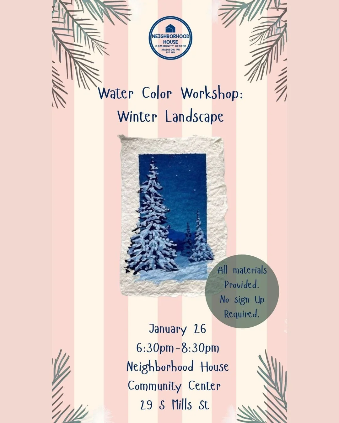 Come Join us for our upcoming Watercolor Workshop! Participants will be able to learn how to create landscapes using watercolor as a medium. All materials will be provided by the NHCC.