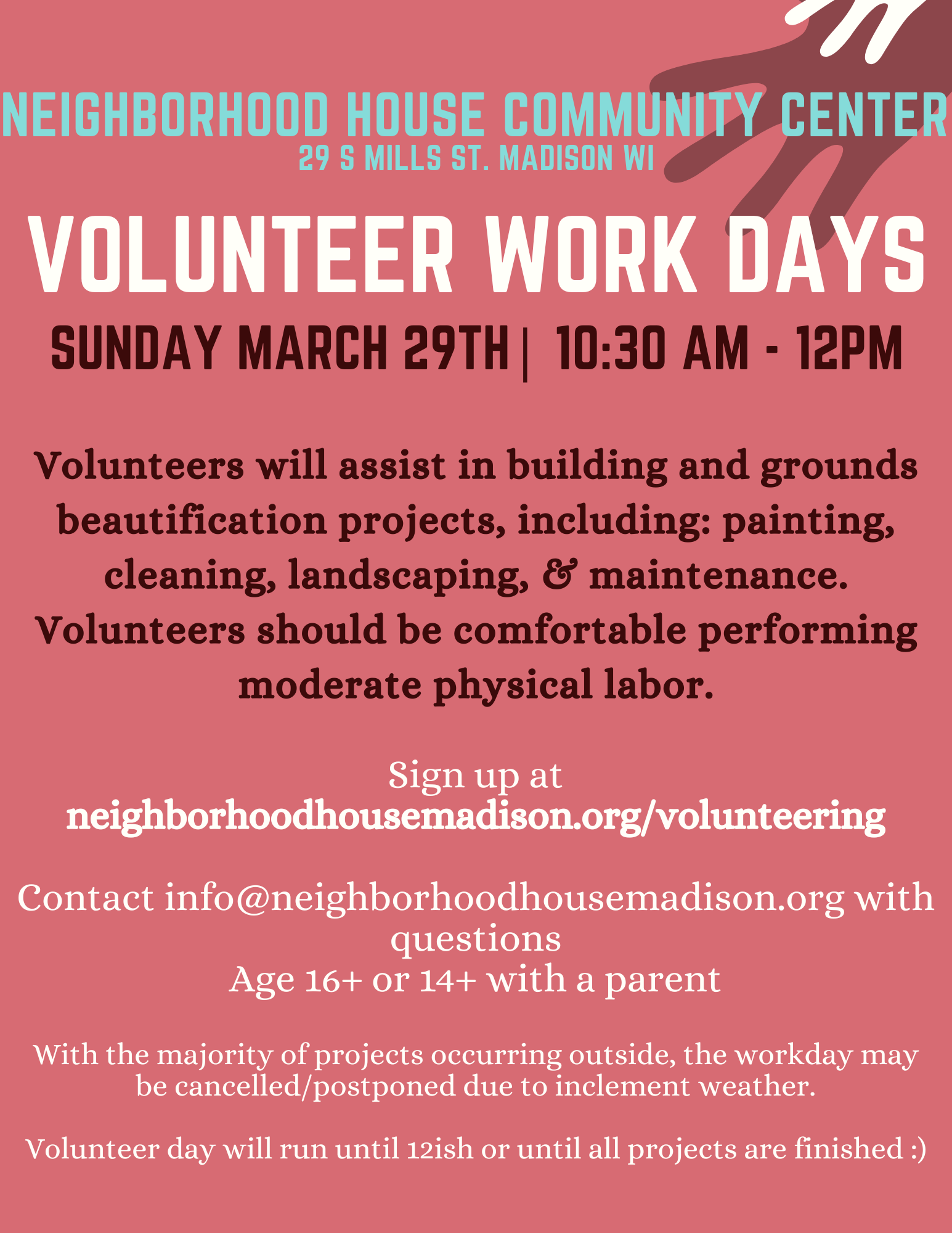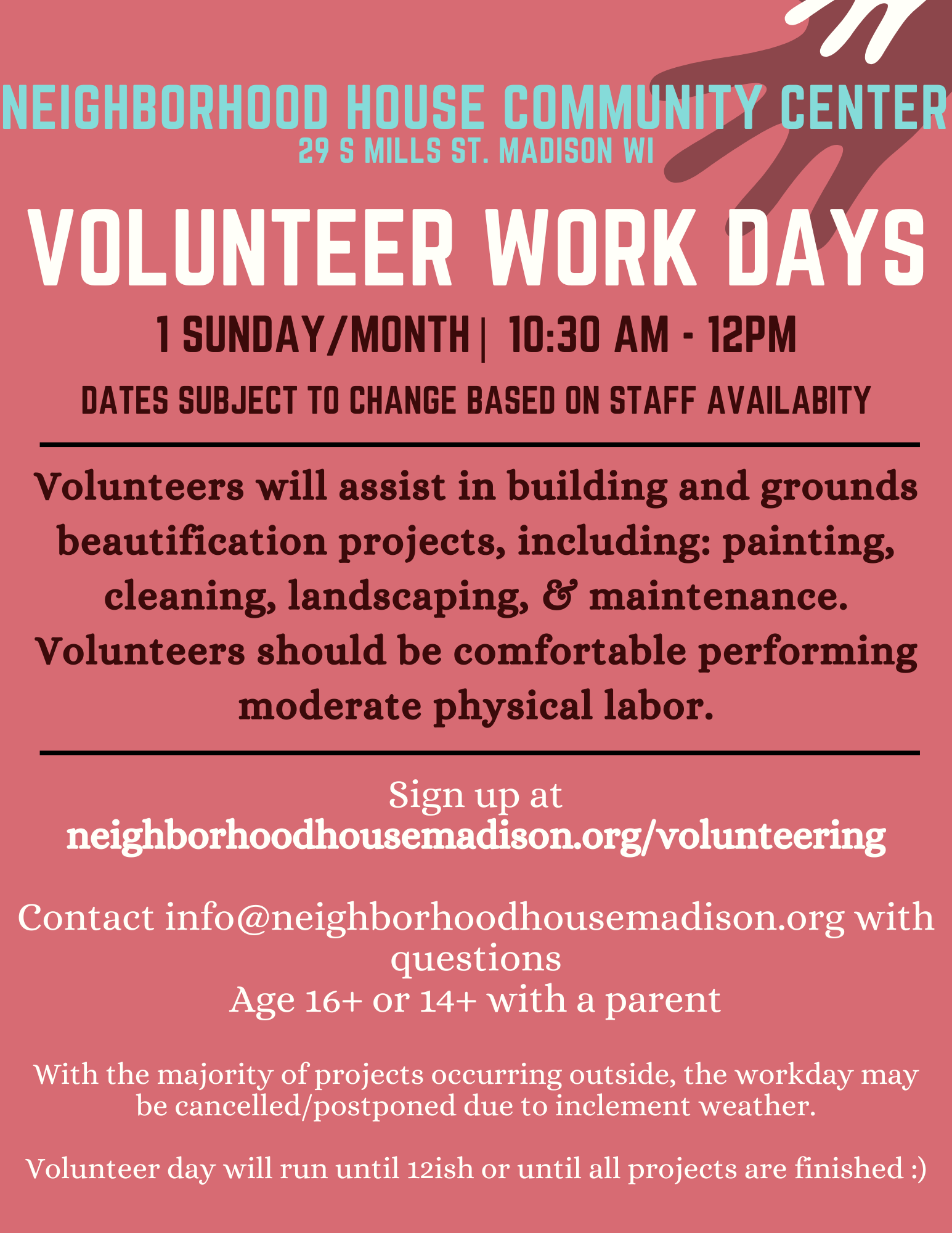 Neighborhood House needs help filling volunteer shifts from May to September. If you are in Madison during the summer months and would like to volunteer please fill out the interest form by clicking on the flier to the right or below.